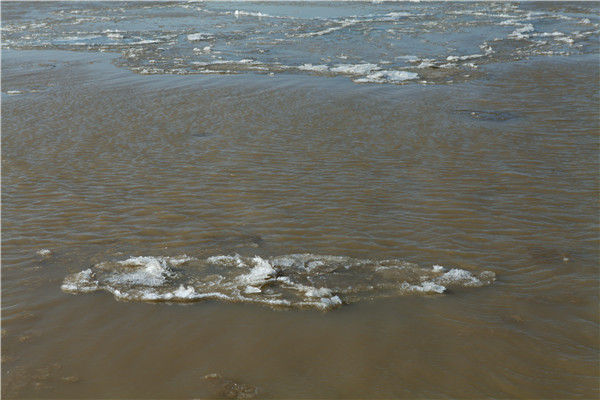 黃河水中出現(xiàn)冰塊。(黃河河口管理局 王娟 攝影)