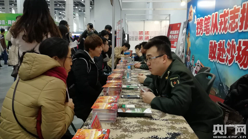 為切實落實《關(guān)于進(jìn)一步引導(dǎo)和鼓勵高校畢業(yè)生到基層工作的意見》(中辦發(fā)〔2016〕79號)中提出的“鼓勵和吸引更多優(yōu)秀高校畢業(yè)生到軍營建功立業(yè)”,大會主辦方再次給予大連軍分區(qū)在春招會搭建展位大力支持,市征兵辦工作人員現(xiàn)場組織開展征兵宣傳、政策解答、兵役登記等工作,鼓勵大學(xué)生參軍入伍。