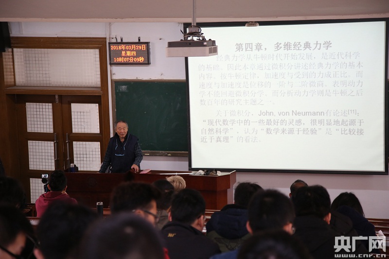 央廣網(wǎng)大連4月17日消息(記者張四清 賈鐵生 通訊員呂東光)新學期,每周一、周四10時05分,一位老者拄著拐、步履仍舊穩(wěn)健,走進一公共大教室,教室里坐滿了學生,老先生底氣十足,思維敏捷,理論解析、公式推導娓娓道來。