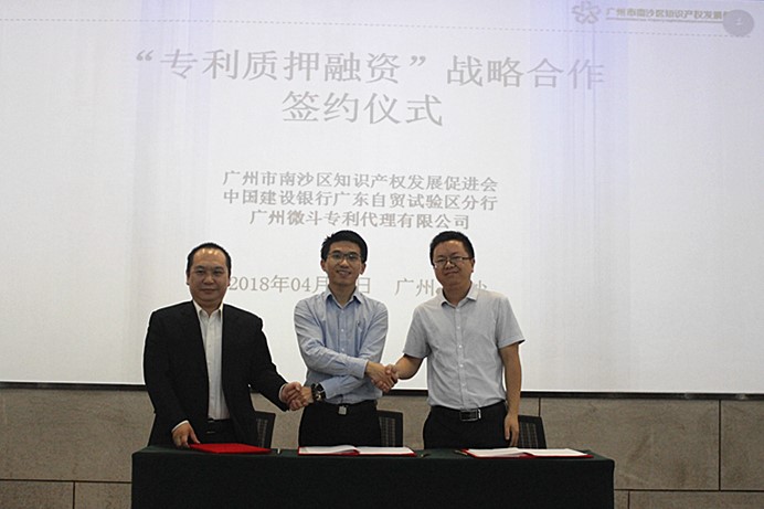 據(jù)介紹,由廣州市南沙區(qū)知識產(chǎn)權(quán)發(fā)展促進會聯(lián)合廣州微斗專利代理有限公司、中國建設(shè)銀行廣東自貿(mào)試驗區(qū)分行推出的專利質(zhì)押貸款具備利率低,補貼高,放款快明顯優(yōu)勢。當天,有近10家企業(yè)與廣州微斗專利代理有限公司簽訂了專利質(zhì)押融資意向書。
