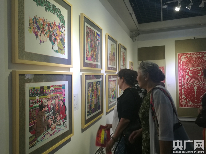 當(dāng)?shù)厝罕妳⒂^農(nóng)民畫、剪紙藝術(shù)作品展