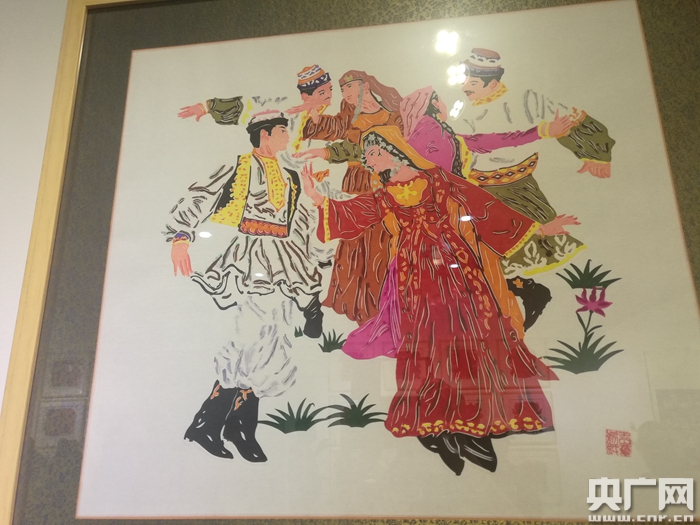 在新疆當(dāng)代美術(shù)館,剪紙藝術(shù)展區(qū)集中展示了一批獨(dú)具新疆特色的剪紙作品。新疆剪紙代表性傳承人、工藝美術(shù)大師王革說,新疆的剪紙作品結(jié)合了中國(guó)剪紙藝術(shù)和新疆多元文化元素,題材新穎,既有中國(guó)北方民間剪紙粗獷、質(zhì)樸的形式,又有南方剪紙細(xì)膩、秀麗的風(fēng)格,在內(nèi)容上大膽突破,地域特色、生活氣息極為濃厚。
