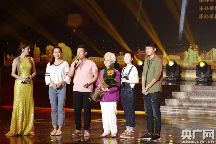新中國(guó)第一代電影人、90歲高齡的著名表演藝術(shù)家田華在長(zhǎng)春電影節(jié)舞臺(tái)上接受觀眾敬意。(央廣記者劉源源 攝)