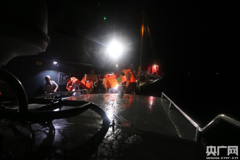云澳中隊(duì)及漁政船值班人員對遇險船員進(jìn)行救援 (央廣網(wǎng)發(fā) 粵漁政供圖)