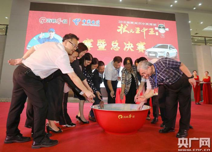 嘉賓共同擲下了第一把骰子,開啟2018海峽兩岸中秋博餅狀元王中王大賽總決賽序幕(央廣網(wǎng)發(fā) 主辦方供圖)
