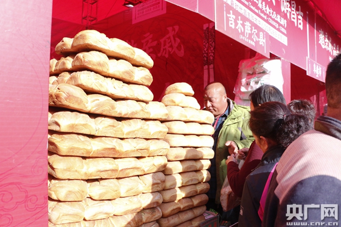 阜康市美食展區(qū)的烤馕別具一格(央廣網(wǎng)見(jiàn)習(xí)記者 韓雪瑩 攝)