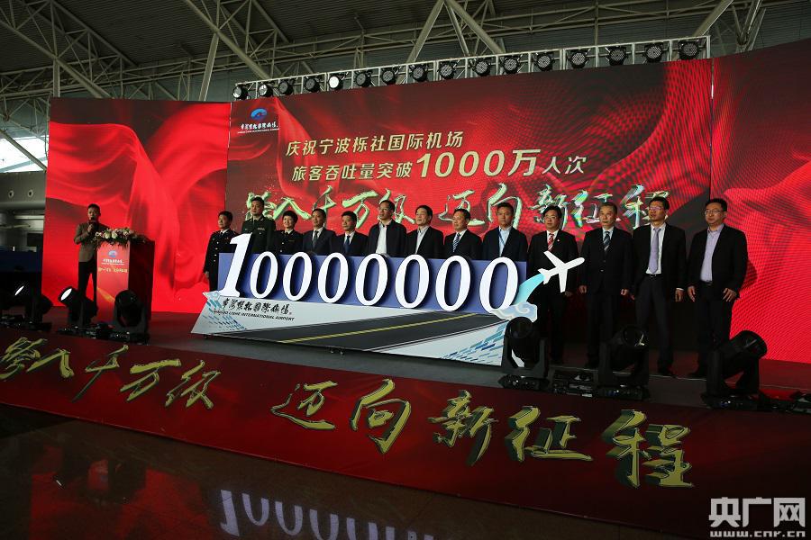 當(dāng)天,寧波機(jī)場(chǎng)在航站樓舉行簡(jiǎn)單不失熱烈的慶;顒(dòng)。在慶祝儀式上,浙江省機(jī)場(chǎng)集團(tuán)公司副總經(jīng)理蔣福敏說(shuō):“邁入‘千萬(wàn)級(jí)’,這對(duì)寧波民航人來(lái)說(shuō)是個(gè)值得慶祝的時(shí)刻。踏上新征程,站在‘1000萬(wàn)’這個(gè)新的起點(diǎn),我們比以往更加有信心和力量,繪就屬于寧波民航未來(lái)最新最美的藍(lán)圖。我們有理由相信,在民航強(qiáng)省戰(zhàn)略的發(fā)展引領(lǐng)下,寧波民航將以更好的服務(wù)水平、更強(qiáng)的保障能力、更快的發(fā)展步伐,做強(qiáng)做大,回饋地方、回饋社會(huì)、回饋百姓,以時(shí)不我待的氣概在東海之濱的跑道上迎風(fēng)飛翔!”
