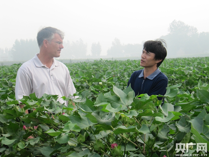 嚴(yán)根土與美國(guó)育種家交流(央廣網(wǎng)發(fā) 中棉所供圖)