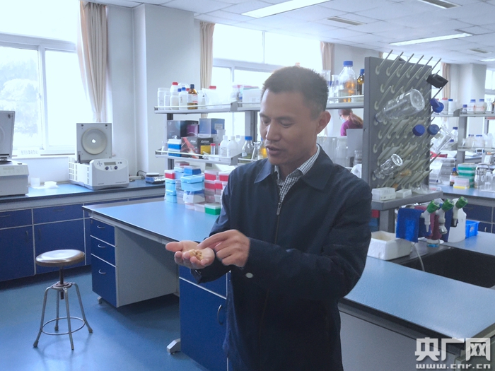 嚴(yán)根土在實(shí)驗(yàn)室(央廣網(wǎng)記者 汪寧 攝)