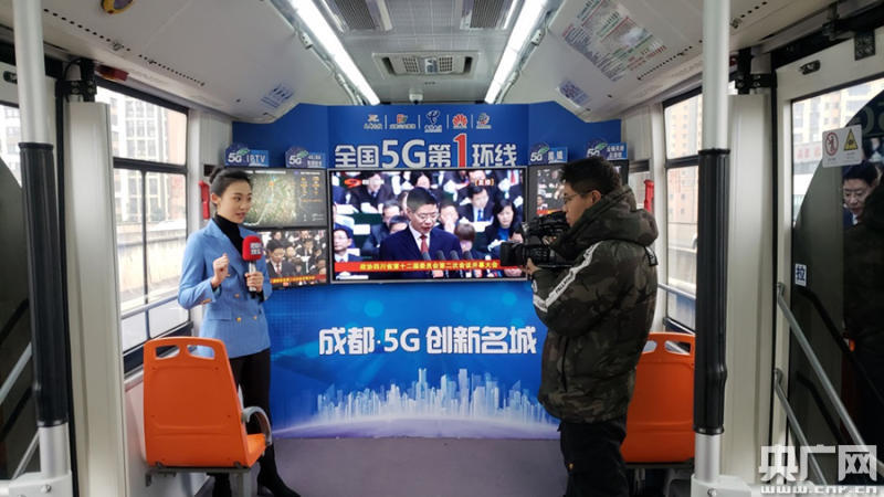 公交車上通過5G網絡直播兩會(央廣網發(fā) 四川電信供圖)