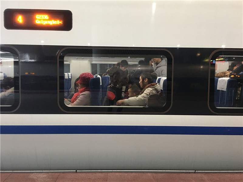 春運(yùn)第一天貴陽北站高鐵動車組列車發(fā)車現(xiàn)場 (央廣記者 張兆福攝)