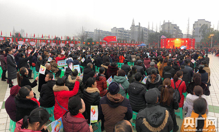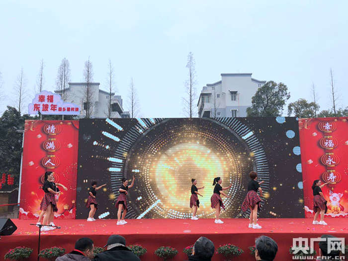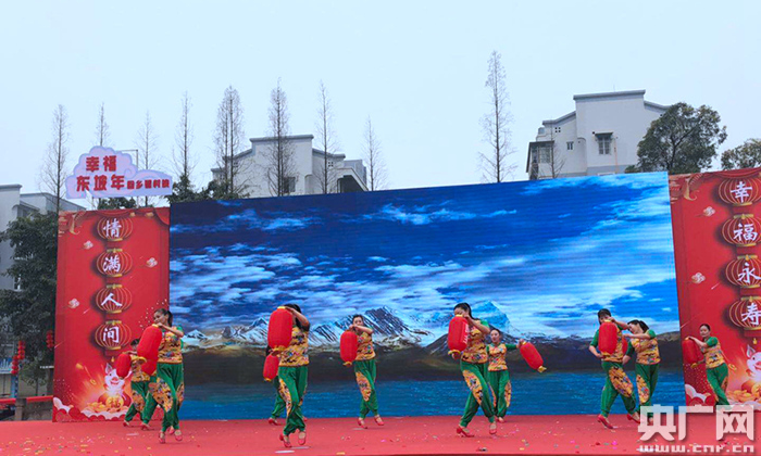 央廣網(wǎng)成都1月25日消息(記者劉濤 眉山臺(tái)記者萬(wàn)紗賓)1月25日上午,幸福東坡年鄉(xiāng)村春晚首場(chǎng)秀在四川省眉山市東坡區(qū)永壽鎮(zhèn)開場(chǎng)。由當(dāng)?shù)乩习傩站臏?zhǔn)備的二十個(gè)文藝節(jié)目輪番上演,吸引了上萬(wàn)名群眾前來(lái)觀看。