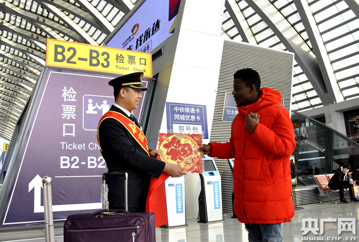 鐵路天津西站小年向旅客贈(zèng)送福禮情暖回家路(央廣網(wǎng)發(fā) 天津西站供圖)