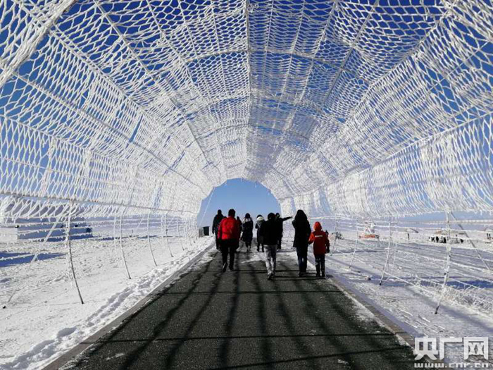 游客穿越冰霜走廊,探秘冰湖奇景(央廣網(wǎng)發(fā) 博州外宣辦供圖)