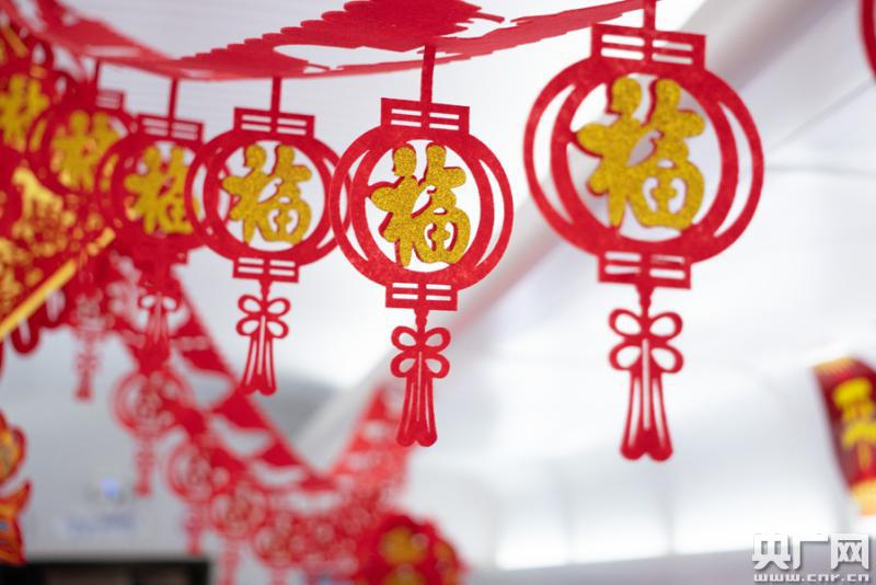 掛滿(mǎn)福字的列車(chē)餐車(chē)(央廣網(wǎng)發(fā) 通訊員方正 攝)