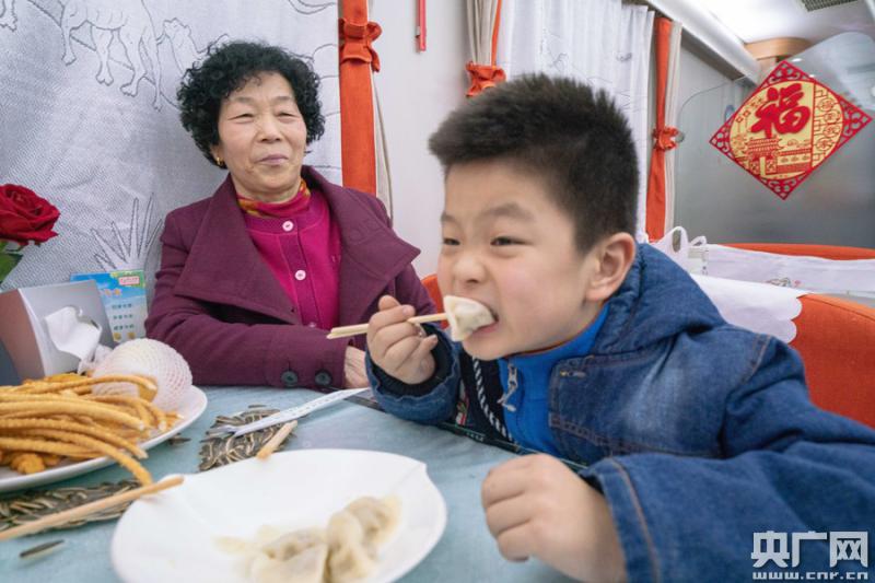 21時(shí)30分,列車(chē)春晚接近尾聲,餐車(chē)工作人員端上了熱氣騰騰的餃子,為歸途中的人們送上了新春祝福,與他們一起共話(huà)年俗,講述記憶中家鄉(xiāng)的年味道和對(duì)新年的美好希冀!