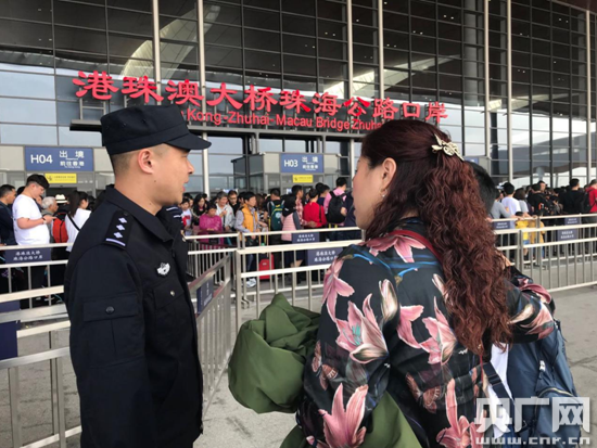 7日,已經(jīng)接近中午,港珠澳大橋珠海公路口岸依然有熙熙攘攘的游客在排隊準備出關(guān),港珠澳大橋珠海公路口岸派出所的民警們正在現(xiàn)場開展人流引導(dǎo)管控,全力維護通關(guān)秩序,防止發(fā)生擁堵事件。