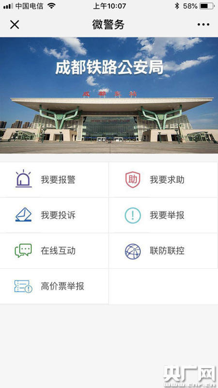 “成鐵公安微警務(wù)”微信服務(wù)平臺(tái)(央廣網(wǎng)發(fā) 手機(jī)截圖)