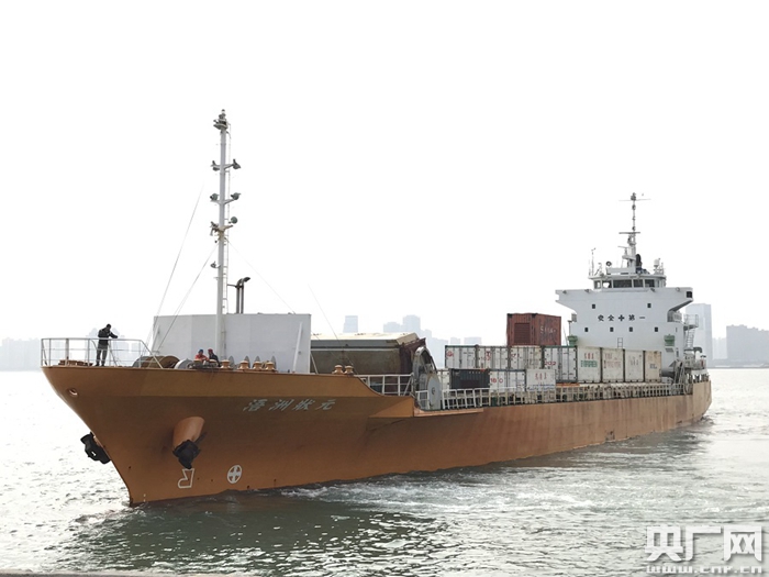 正在靠泊的臺(tái)灣貨輪(央廣網(wǎng)記者 陳庚 攝)
