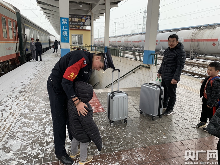 天津乘警迎戰(zhàn)雨雪天氣護(hù)航旅客返程(央廣網(wǎng)發(fā) 天津乘警支隊(duì)供圖)