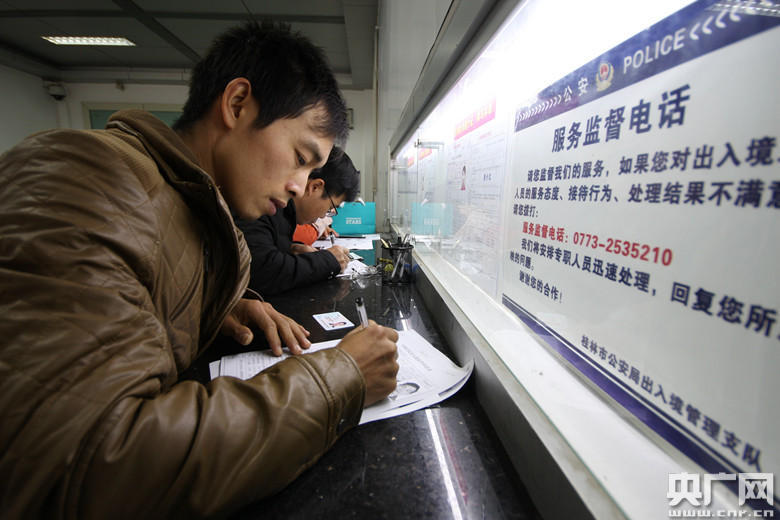 2019年春節(jié)期間,恭城瑤族自治縣公安局出入境接待大廳,群眾在辦理出入境證件(央廣網(wǎng)發(fā) 通訊員供圖)