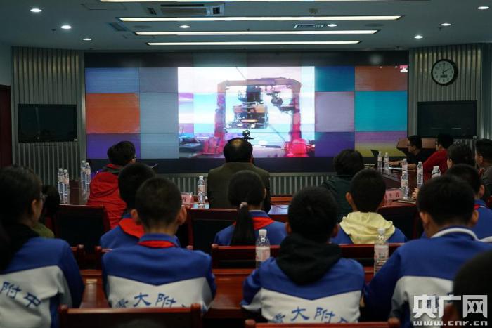 在北海局應(yīng)急指揮廳內(nèi),來(lái)自青大附中的同學(xué)們正在聚精會(huì)神地通過(guò)視頻連線,觀看科考隊(duì)員們布放潛水器“海龍Ⅲ”,準(zhǔn)備開始本航次第三航段第七次下潛作業(yè)。船上科考隊(duì)員介紹,本航段,在母船“大洋一號(hào)”船的配合下,“海龍Ⅲ”搭載多種自主研發(fā)監(jiān)測(cè)探查針及取樣設(shè)備,現(xiàn)已完成了六次下潛作業(yè),原位觀測(cè)到海底大量大型底棲動(dòng)物、潔凈海水、底棲魚類、深海沉積物等多種樣品,進(jìn)行了多種原位參數(shù)測(cè)量。“海龍Ⅲ”ROV是由大洋協(xié)會(huì)支持、由上海交通大學(xué)葛彤教授團(tuán)隊(duì)研發(fā)的新一代國(guó)產(chǎn)化、大功率、作業(yè)型的水下無(wú)人遙控潛水器,特別適用于深海科學(xué)考察作業(yè)。