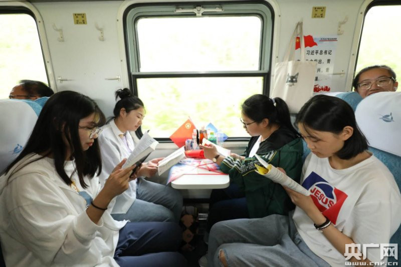 考生在高考專列上合影留念(央廣網(wǎng)記者 喬仁慧 攝)