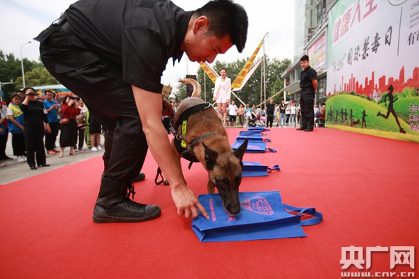 活動期間向新成立的“城陽區(qū)禁毒陽光志愿服務驛站”和禁毒志愿者代表授牌和授旗。現(xiàn)場60名禁毒志愿者代表進行了宣誓,并莊嚴承諾。城陽公安分局兩條緝毒犬進行了現(xiàn)場模擬搜毒表演,現(xiàn)場觀眾上臺隨機擺放6個樣品道具(其中一個裝有冰毒),再由緝毒犬上臺嗅聞搜索,贏得現(xiàn)場陣陣喝彩與掌聲,F(xiàn)場的禁毒知識有獎問答、毒品及吸販毒工具展示和由禁毒志愿者、禁毒社工、現(xiàn)場群眾在“健康人生、綠色無毒”倡議百米橫幅上簽名,營造了濃厚的現(xiàn)場宣傳氛圍,收到了良好的社會效果。