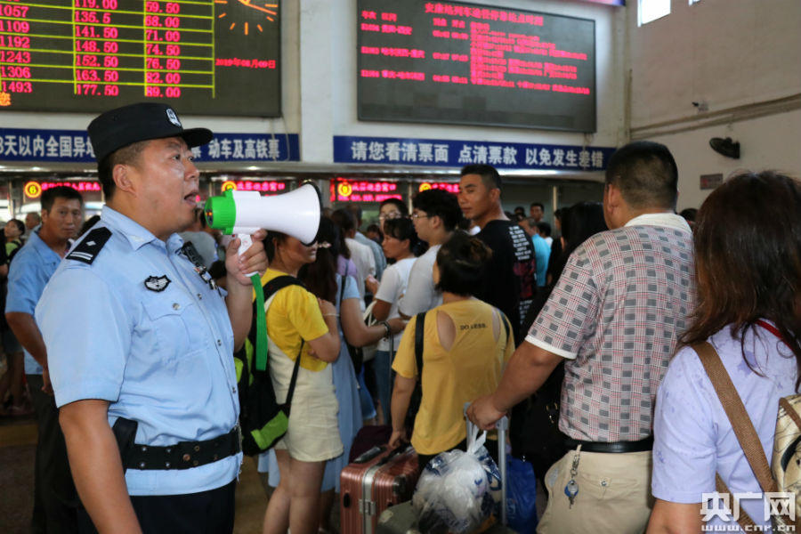 央廣網(wǎng)西安8月10日消息(記者雷愷 通訊員郝黎俊 許晶)多日降雨后,8月9日上午9時(shí)許,陜南漢中、安康地區(qū)再次普降大暴雨。受降雨影響,陽安鐵路線西鄉(xiāng)境內(nèi)區(qū)間發(fā)生塌方,線路臨時(shí)中斷。為確保旅客生命財(cái)產(chǎn)安全,正在陽安線安康至西鄉(xiāng)區(qū)間運(yùn)行的K8221次、K767次、K8223次等三趟列車折返回到安康火車站,造成上千名前往漢中的旅客滯留安康車站,安康鐵警全力護(hù)航滯留旅客出行。