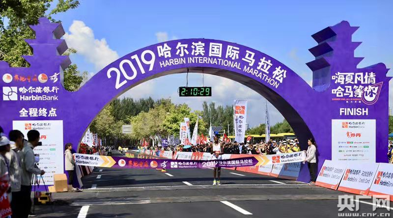 男子全程冠軍選手撞線 (央廣網(wǎng)發(fā) 哈爾濱市委宣傳部提供)
