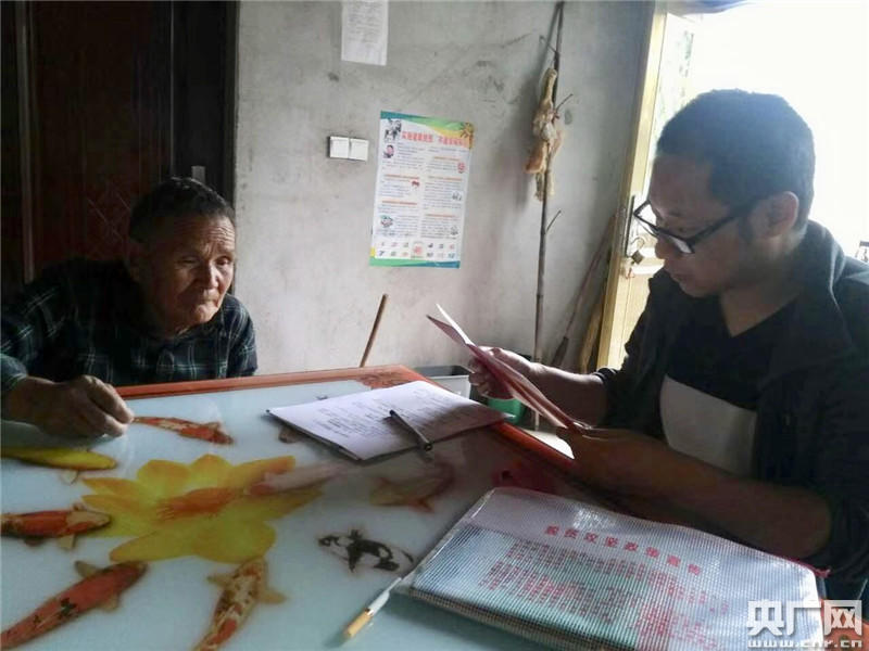 李夏走訪高楊村2016脫貧戶汪根托(央廣網(wǎng)發(fā) 圖片由績(jī)溪縣委宣傳部提供)