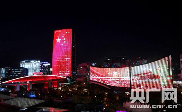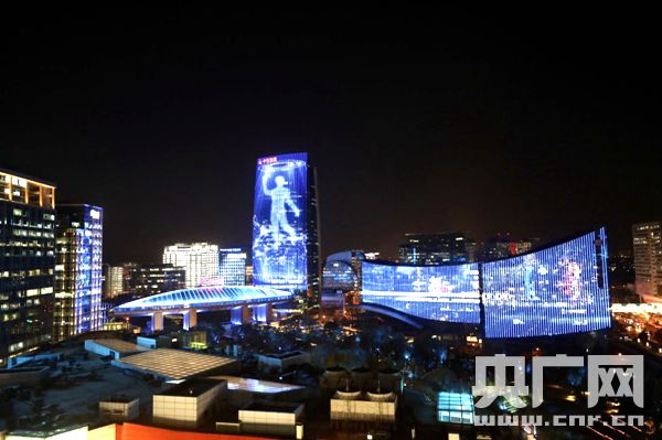 中鋼大廈、e世界大廈、中關(guān)村大廈等6座樓體播放燈光動畫(央廣網(wǎng)發(fā) 海淀區(qū)委宣傳部供圖)