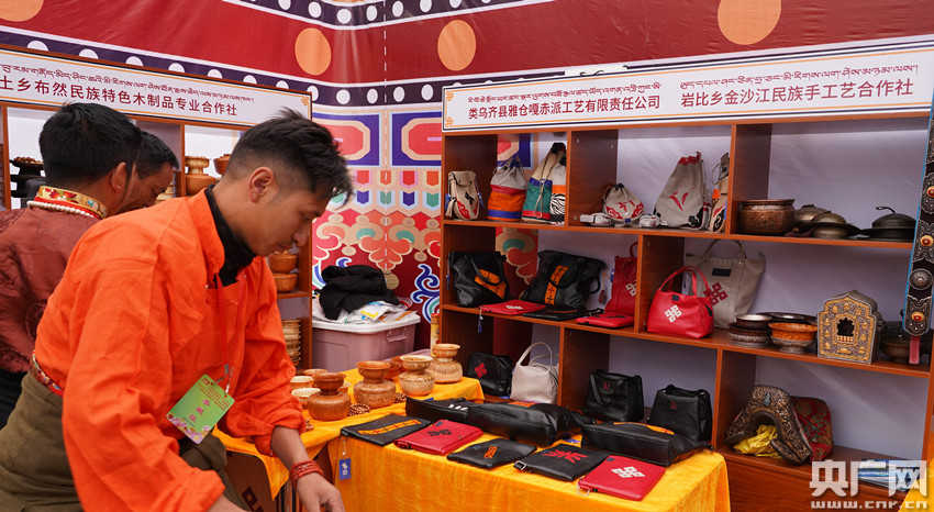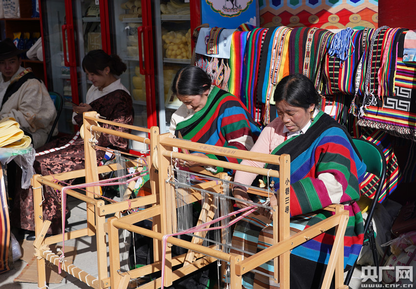 現(xiàn)場(chǎng)的民族手工技藝展示(央廣網(wǎng)記者 普布次仁 攝)