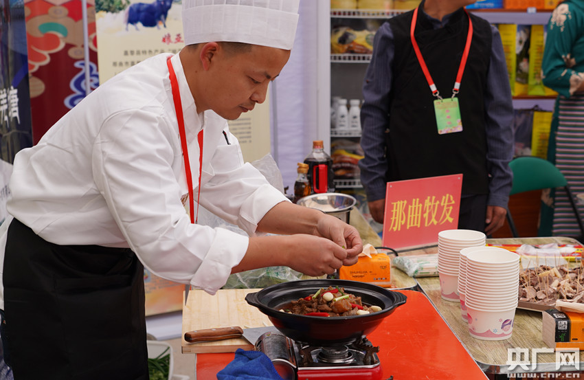 現(xiàn)場(chǎng)正在用牦牛肉制作美食(央廣網(wǎng)記者 普布次仁 攝)