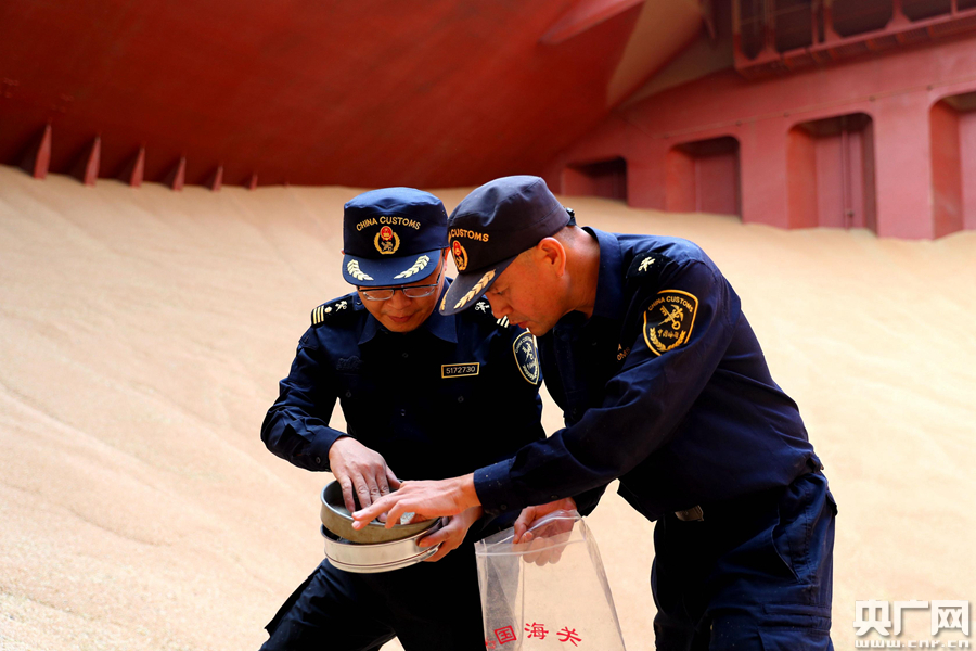 “在錨地,我們對船舶衛(wèi)生檢疫和小麥的表層檢驗(yàn)檢疫先后開展,及時檢查有無重大疫情和質(zhì)量安全問題!蹦仙澈jP(guān)散貨中心查驗(yàn)科王健科長介紹,“就小麥檢驗(yàn)檢疫而言,主要檢查貨物表層是否有水濕結(jié)塊、發(fā)霉變質(zhì)、發(fā)熱酸敗、異味等情況,有無鼠類、鳥類等動物及尸體、動物排泄物等和其他情況。”