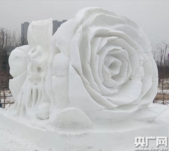 大學(xué)生雪雕作品《花》(央廣網(wǎng)記者 劉源源 攝)