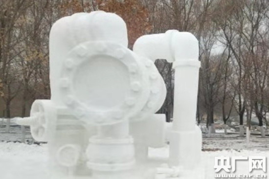 大學(xué)生雪雕作品《工業(yè)記憶》(央廣網(wǎng)記者 劉源源 攝)