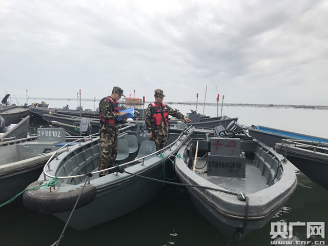 海警執(zhí)勤人員對查扣的“飛艇”進行清點(央廣網(wǎng)發(fā) 照片由廣西海警局提供)