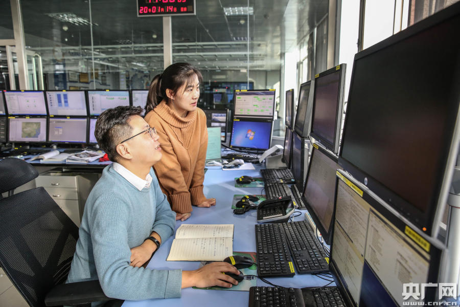 民航青?展芊志旨夹g(shù)保障部機務(wù)員正在認真核查飛行電報流轉(zhuǎn)狀態(tài)(央廣網(wǎng)發(fā) 張得力 攝)