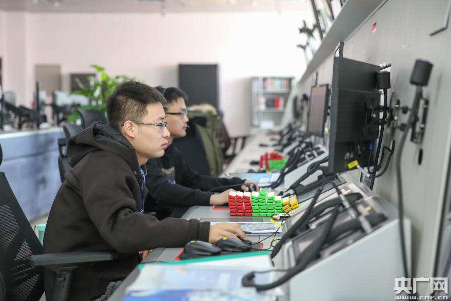 民航青?展芊志诌M近管制室管制員正在保障春運高峰時段航班(央廣網(wǎng)發(fā) 張得力 攝)