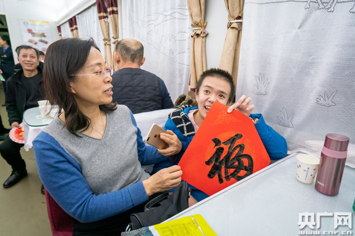 乘車旅客收到列車工作人員現(xiàn)場(chǎng)書寫的福字(央廣網(wǎng)發(fā) 通訊員方正 攝)