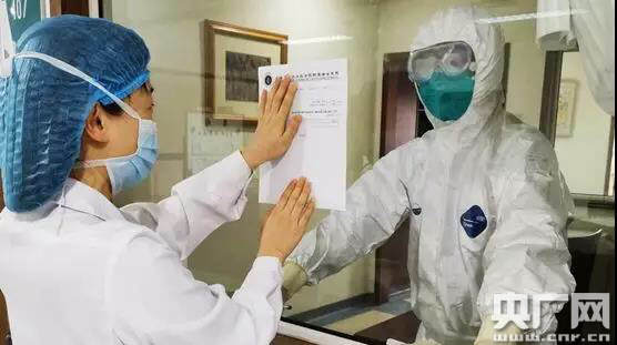被感染留觀病房中的醫(yī)護(hù)人員(央廣網(wǎng)發(fā) 瑞金醫(yī)院供圖)