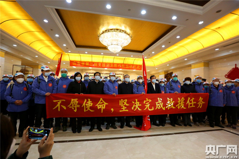 山東省第二批赴湖北醫(yī)療隊(duì)今日出征(央廣網(wǎng)記者 唐磊 攝)