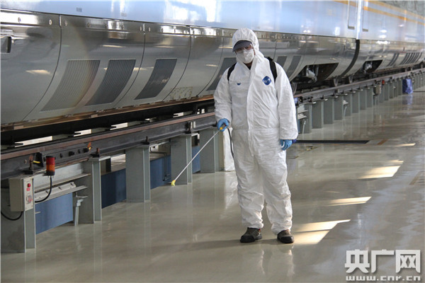 中車長(zhǎng)客正在進(jìn)行車間消毒作業(yè)(央廣網(wǎng)發(fā) 中車長(zhǎng)客供圖)