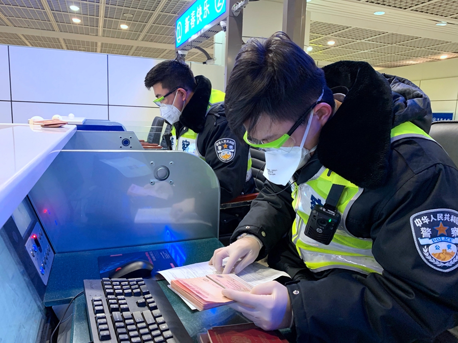 邊檢民警正在為機(jī)組人員集中辦理出入境通關(guān)手續(xù)(央廣網(wǎng)發(fā) 寧夏邊檢總站供圖)