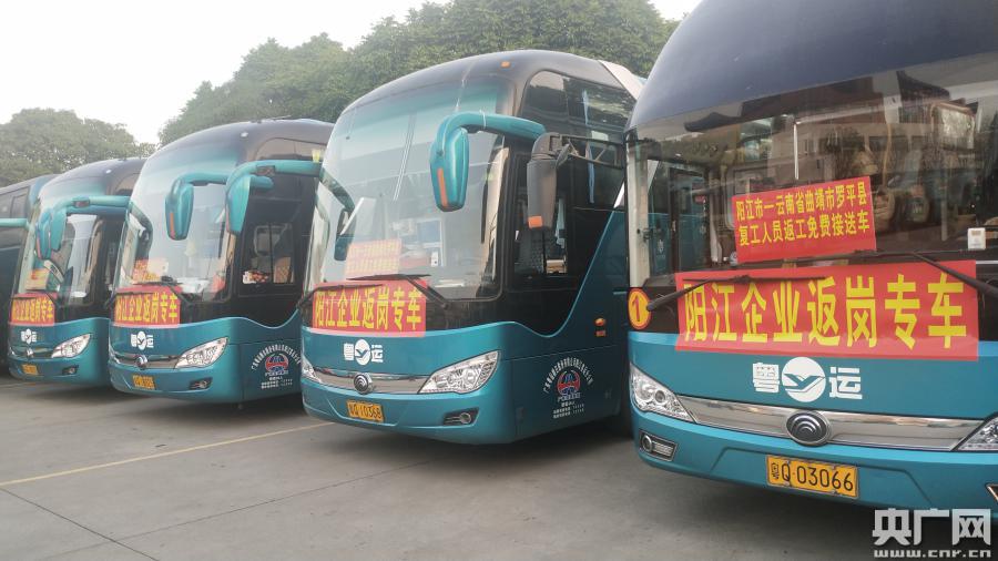 央廣網(wǎng)陽江2月28日消息(記者郭翔宇 通訊員岳韻萱)昨天,9輛“返崗直通粵運大巴”順利將陽江市內(nèi)10多家復工企業(yè)的180名廣西籍務工人員接返陽江,圓滿完成本次的員工返崗運送服務。