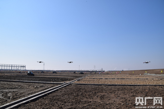 試驗(yàn)田中,十幾架植保無人機(jī)在不同區(qū)域巡回噴灑土壤調(diào)節(jié)劑。據(jù)了解,植保無人機(jī)采用GPS定位系統(tǒng),前期只需對(duì)作業(yè)區(qū)域進(jìn)行測量登記,并標(biāo)記水塘、電線桿等障礙物數(shù)據(jù),再將數(shù)據(jù)傳至手持終端,無人機(jī)即可根據(jù)設(shè)定的線路、區(qū)域進(jìn)行噴灑作業(yè),大大提高了農(nóng)業(yè)生產(chǎn)效率。