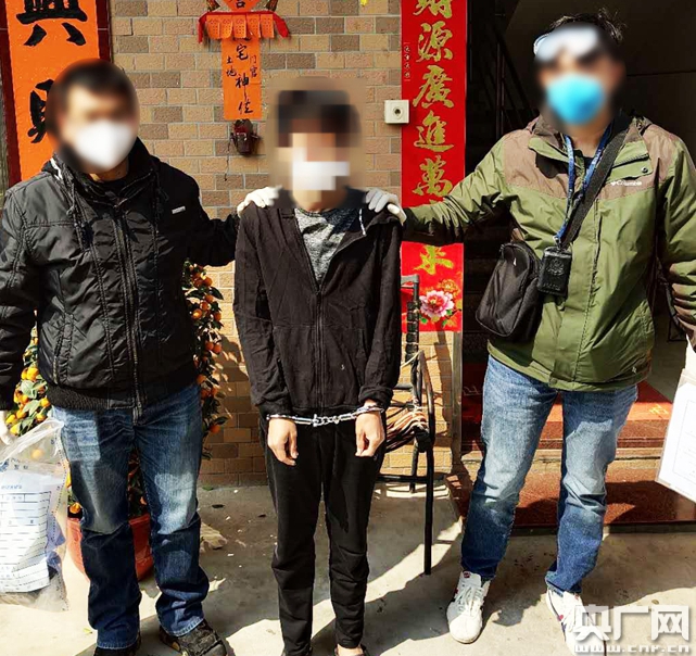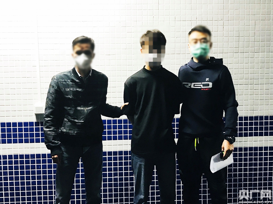 △民警在珠海市抓獲嫌疑人麥某(央廣網(wǎng)發(fā) 警方供圖)