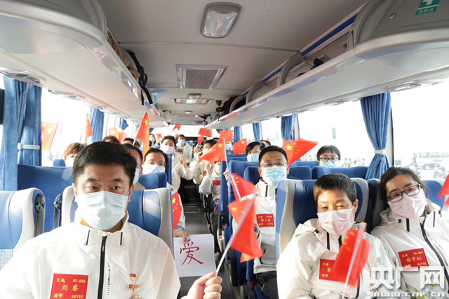 醫(yī)療隊(duì)成員集體乘車返回(央廣網(wǎng)記者 褚夫晴 攝)