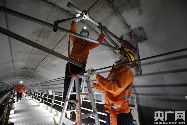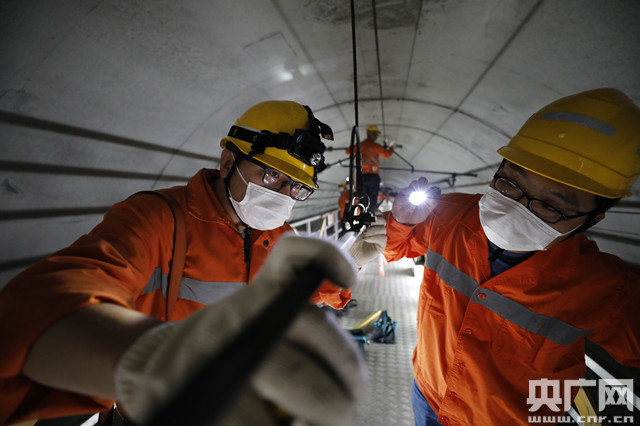 央廣網(wǎng)福州4月2日消息(記者張子亞 通訊員王衛(wèi)新 張志霞)3月31日凌晨1點(diǎn),昌福線青云山隧道內(nèi),在一列220米長的接觸網(wǎng)檢修列和兩臺接觸網(wǎng)作業(yè)車上,福州供電段近50名接觸網(wǎng)工,正在6米高的作業(yè)平臺上徹夜鏖戰(zhàn)。昌福線于2013年9月開通運(yùn)營,青云山隧道全長22.06公里,動(dòng)車通過隧道耗時(shí)約7分鐘,有著“華東第一隧”的美譽(yù)。